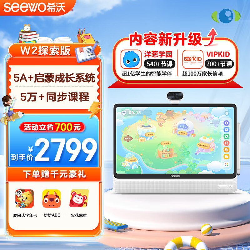 希沃学习机W2 15.6英寸防眩光 类纸护眼平板电脑 家教机 AI学生平板 点读机探索版珍珠白6G+128G价格:2799.00元!