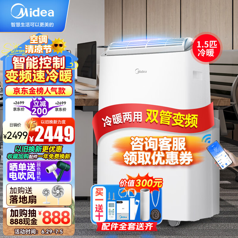 美的(Midea)移动空调冷暖1.5匹变频 京东小家智能生态 家用厨房空调一体机免安装免排水 KYR-35/BP3N8Y-PT价格:2499.00元!