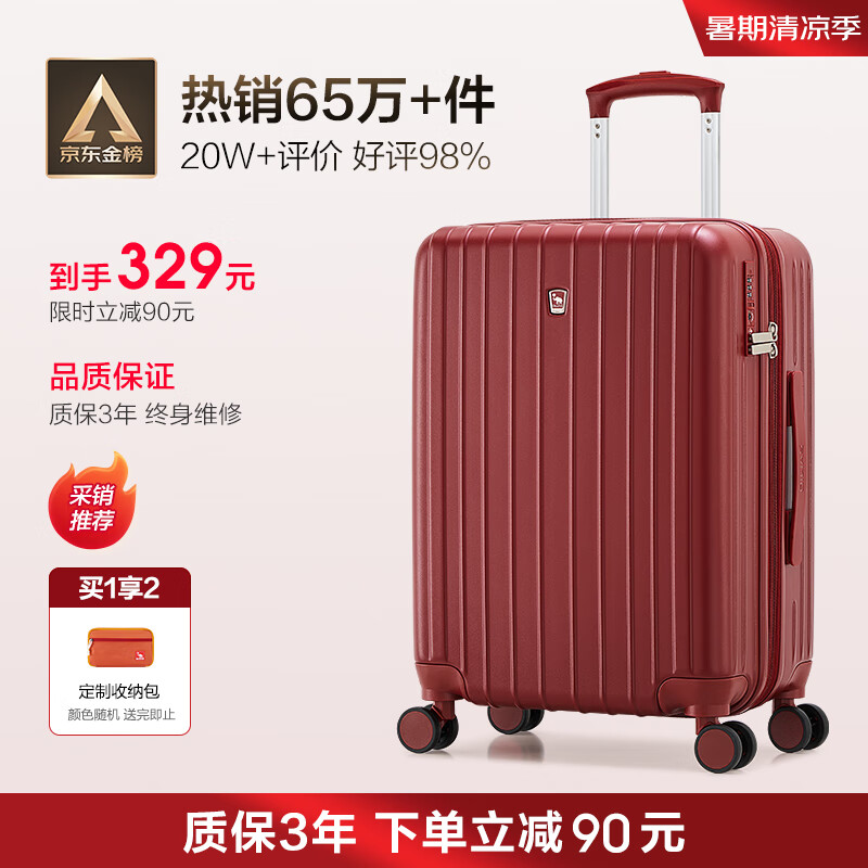 爱华仕行李箱20英寸拉杆箱女小型陪嫁旅行箱登机箱充电皮箱密码箱中国红价格:419.00元!