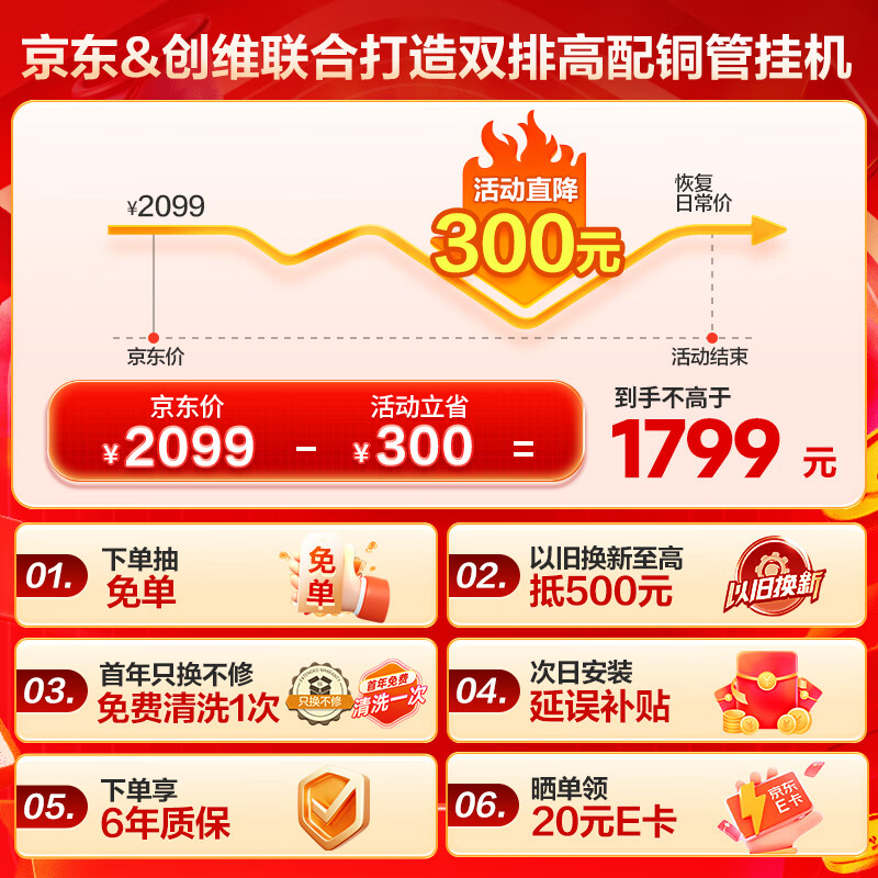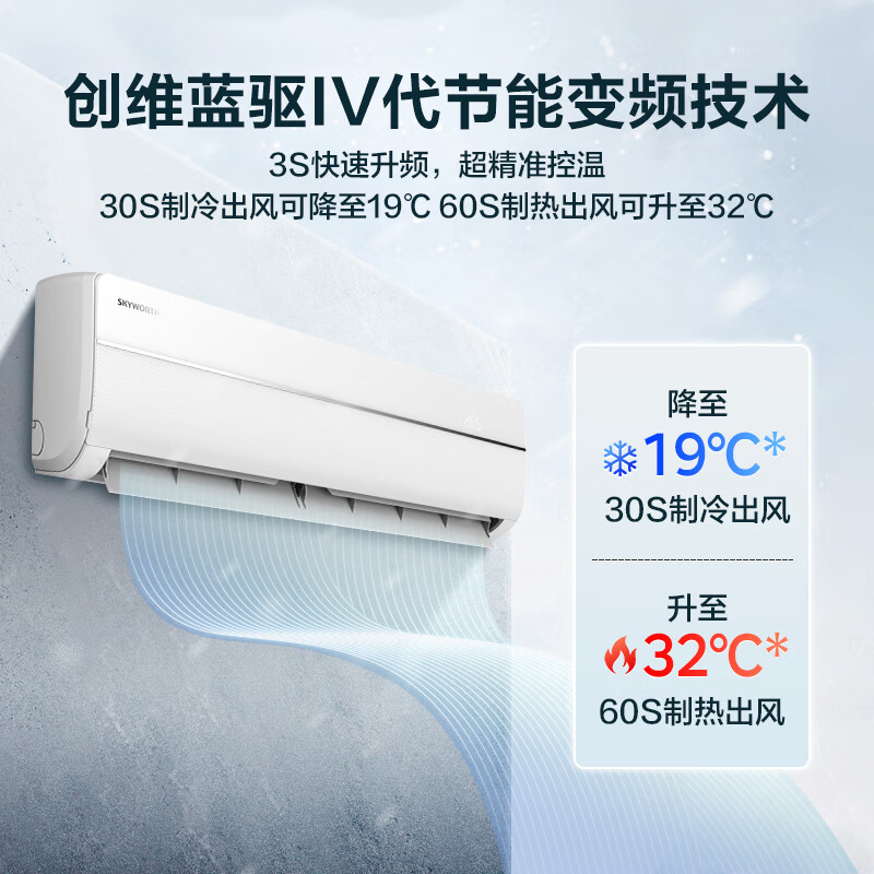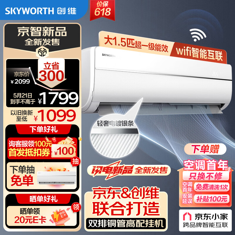 创维大1.5匹京智 新一级能效双排铜管超省电 变频冷暖 卧室壁挂式挂机 APP智能空调KFR-35GW/V3GM1J-N1价格:1899.00元!