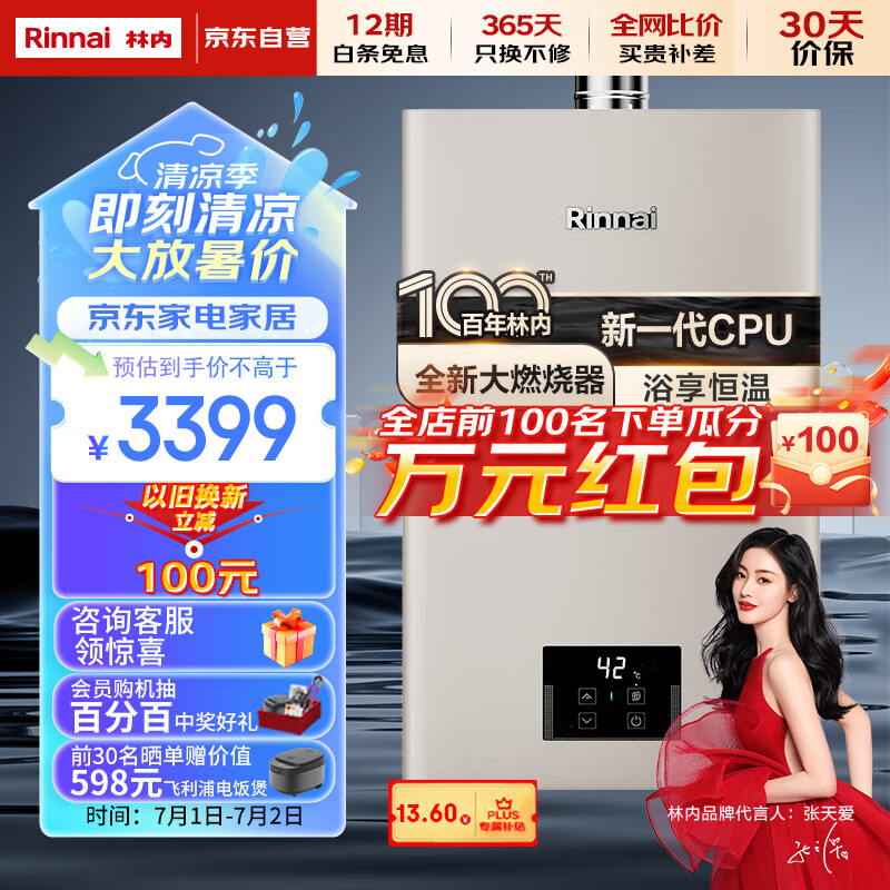 林内(Rinnai)【小蛮腰Pro】16升燃气热水器 全新智慧芯 恒温再升级 天然气热水器16GD32(JSQ31-GD32)以旧换新价格:3399.00元!