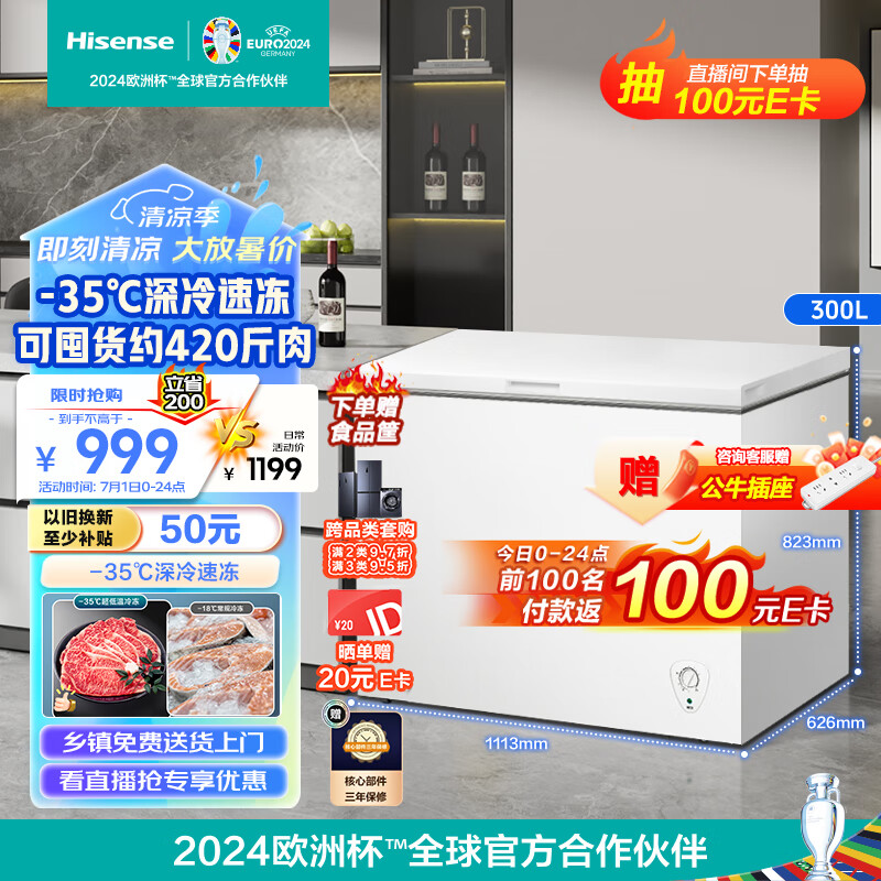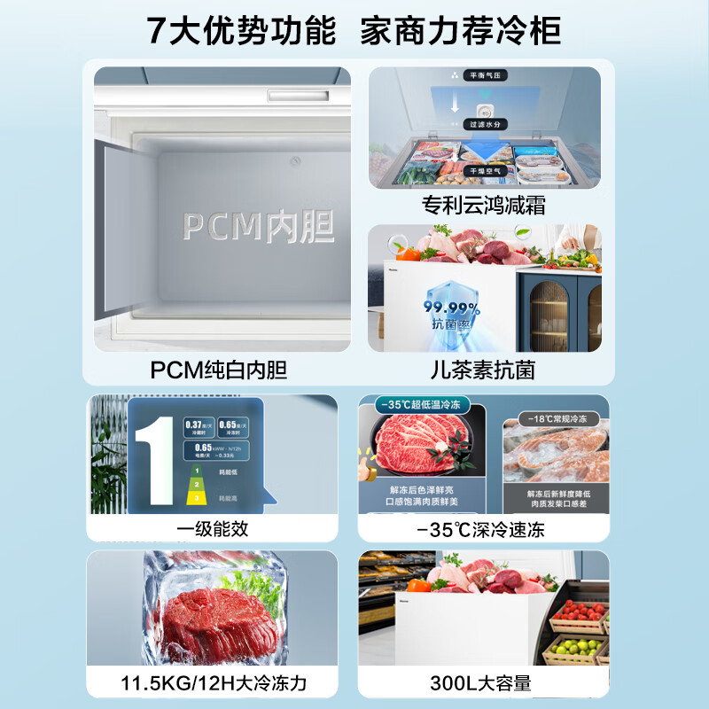 海信(Hisense)300升减霜大容量冰柜家用商用囤货冷柜 钢制内胆 冷藏冷冻转换 雪糕冰柜卧式冰箱BD/BC-300ZNUM价格:1099.00元!