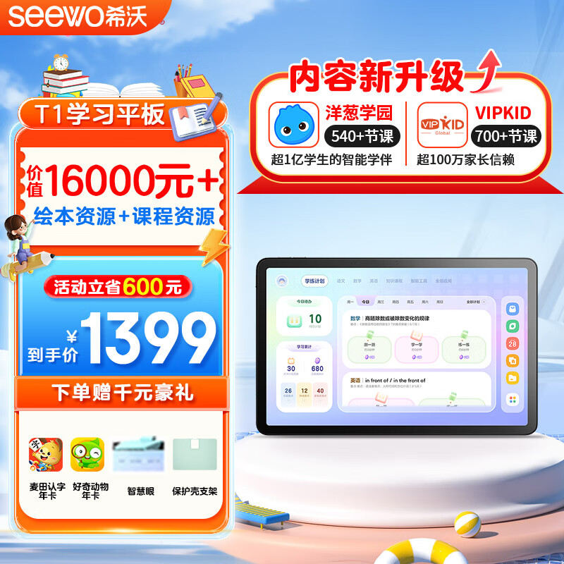希沃护眼学习平板T1 学习机平板电脑小学初中高中AI学生平板儿童英语早教机学练机太空灰6G+128G价格:1399.00元!