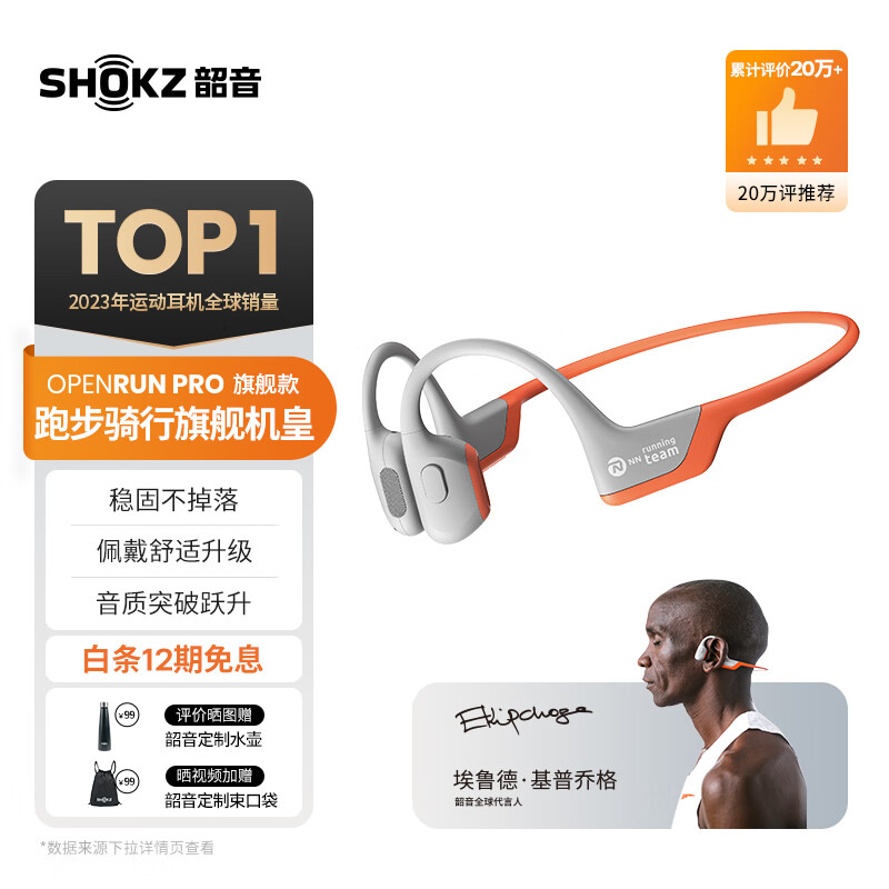 韶音(SHOKZ)OpenRun Pro骨传导蓝牙耳机开放式耳机运动无线骨传导耳机跑步不入耳佩戴S810/S811 【基普乔格联名】EK橙价格:1098.00元!