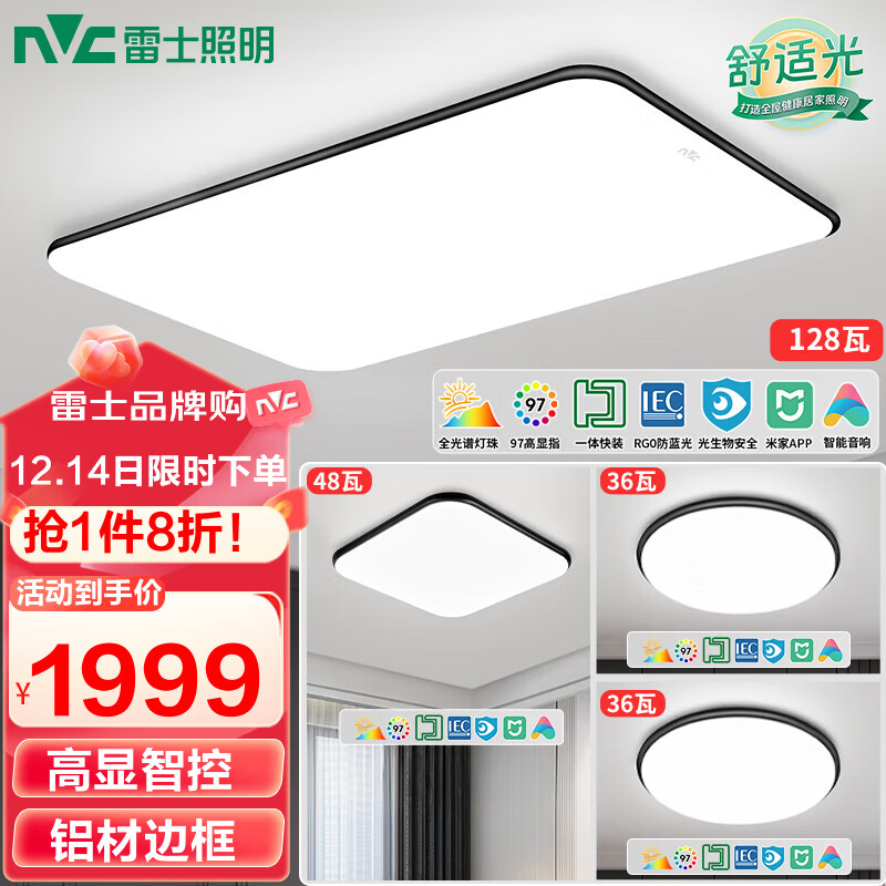 雷士(NVC)LED吸顶灯现代简约客厅卧室餐厅灯具米家智能高显小白灯饰黑潮D价格:2498.00元!
