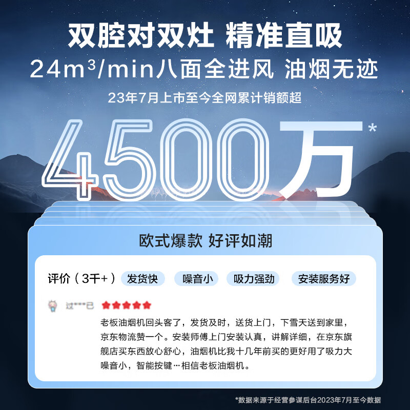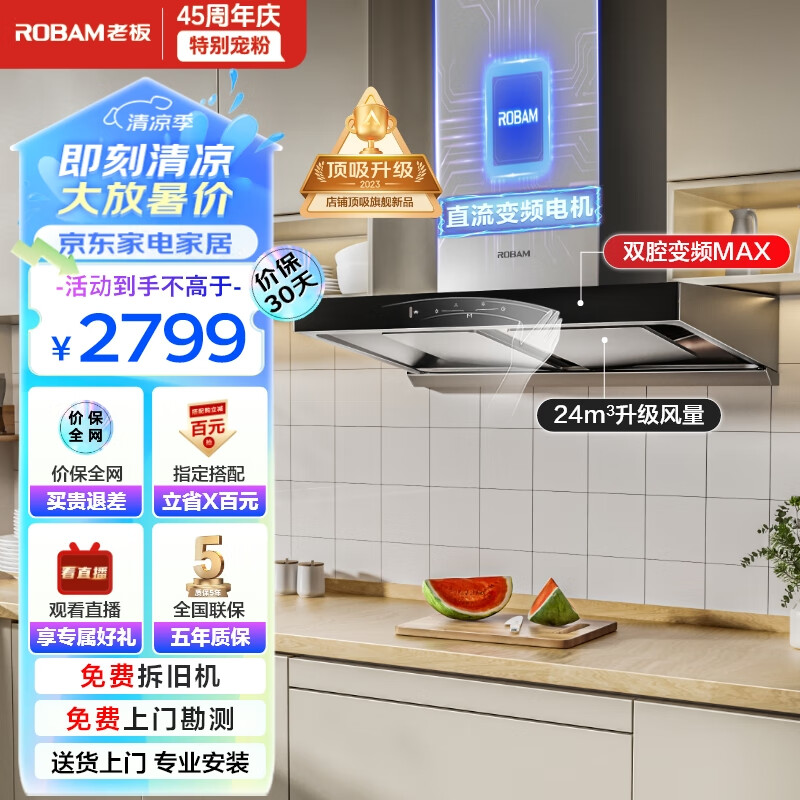 老板(Robam)抽油烟机欧式双腔变频油烟机家用大吸力24大风量吸油烟机顶吸式挥手智控脱排油烟机60D3S价格:2799.00元!