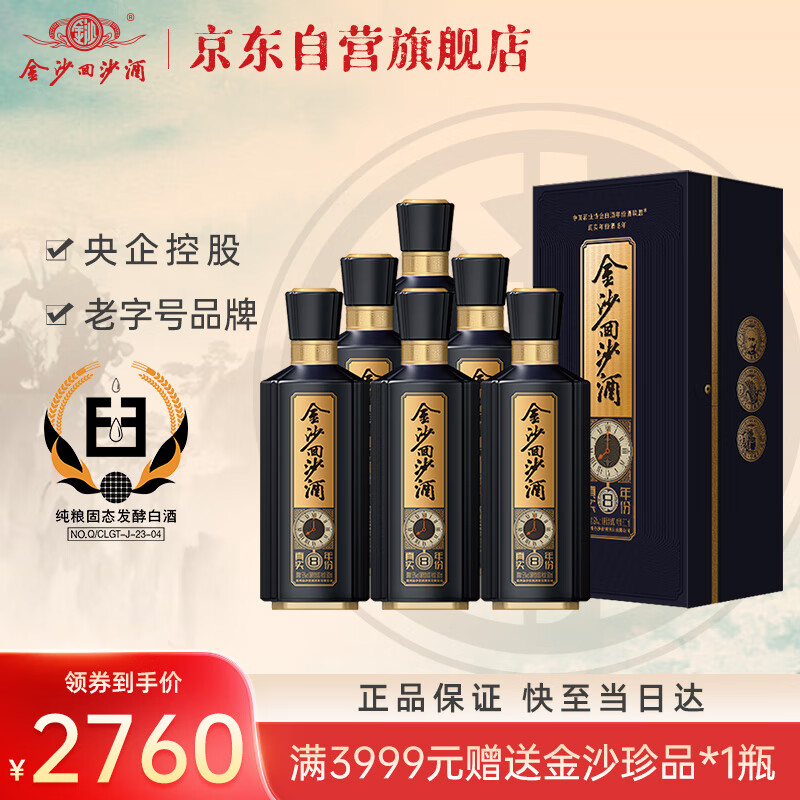 金沙回沙酒 真实年份8年 酱香型白酒 53度 500ml*6瓶 整箱装 纯粮食酒价格:2790.00元!