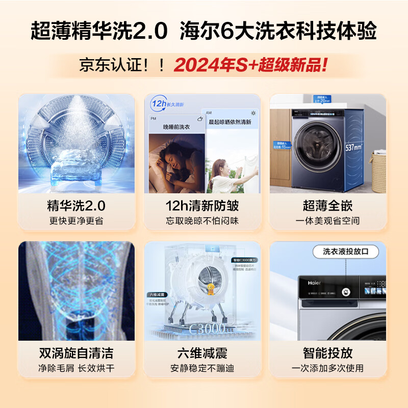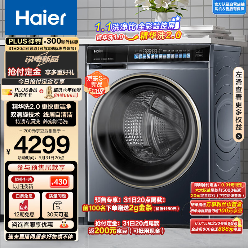 海尔(Haier)滚筒洗衣机全自动 云溪176 洗烘一体机 10公斤大容量【精华洗2.0EG100HBD176L】超薄 带烘干价格:4499.00元!
