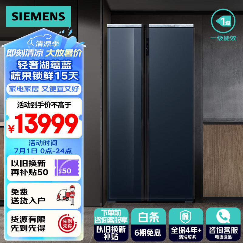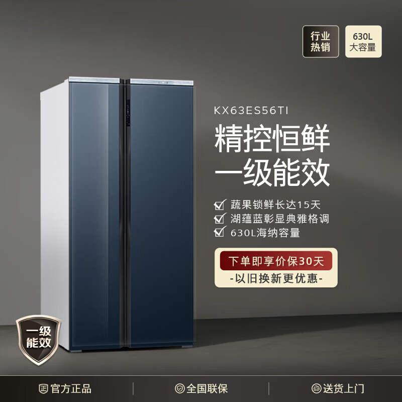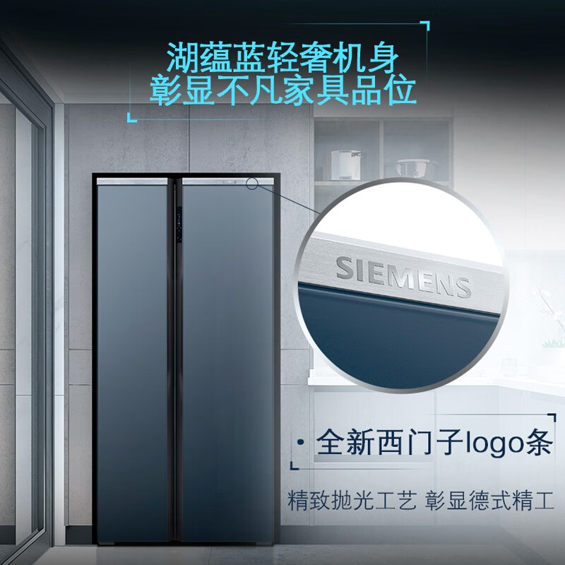 西门子(SIEMENS)630升冰箱对开门冰箱双开门智能变频无霜恒鲜 家用大容量囤货玻璃面板湖蕴蓝以旧换新 KX63ES56TI价格:15529.00元!