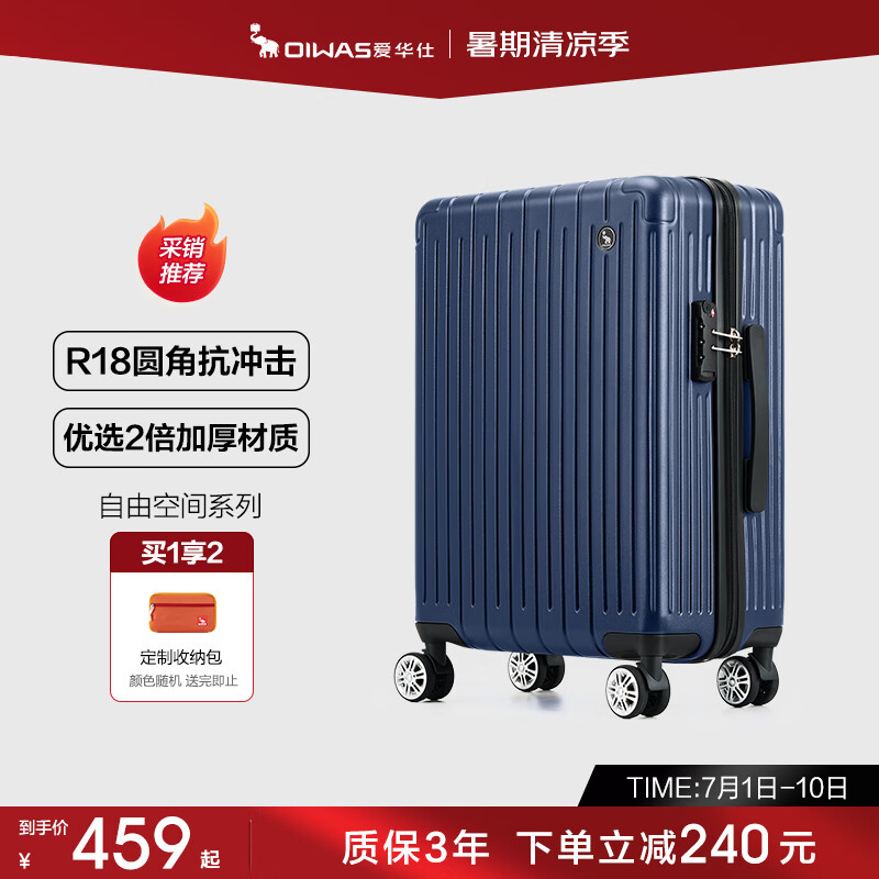 爱华仕行李箱男拉杆箱女大容量旅行箱万向轻便飞机轮28英寸密码箱海军蓝价格:699.00元!