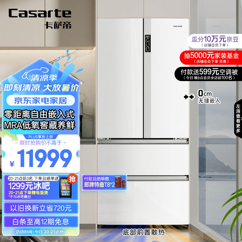 卡萨帝(Casarte)550升纯白零嵌法式多门白色家用大容量双系统超薄嵌入式高端电冰箱变频BCD-550WGCFDM4WKU1价格:11999.00元!