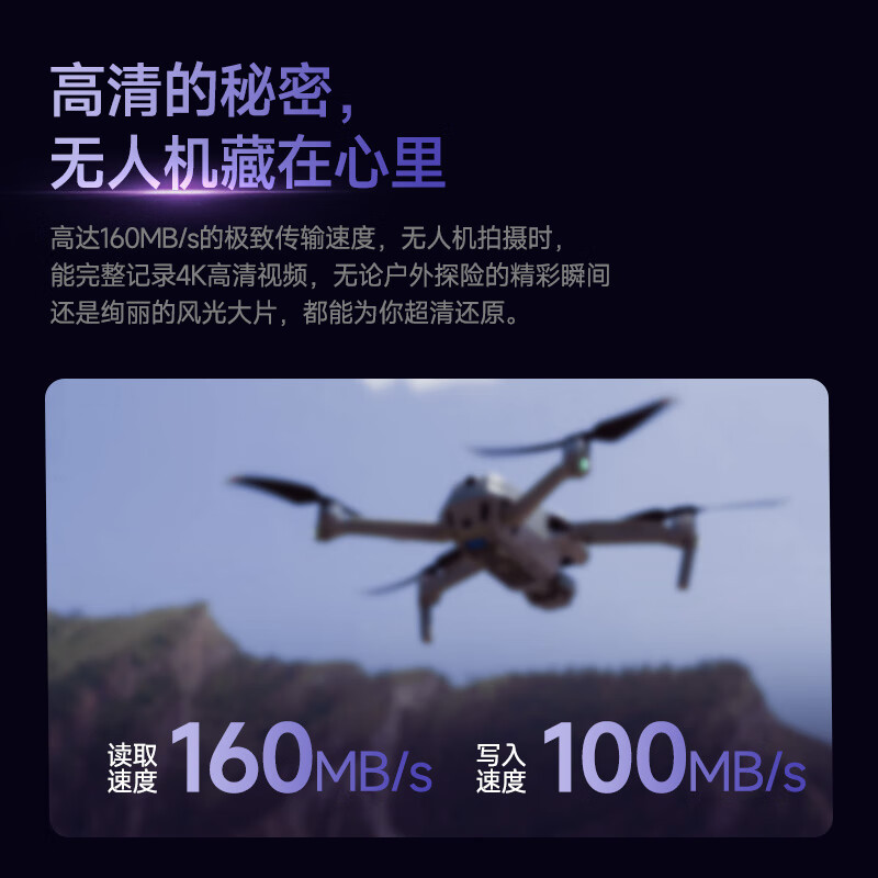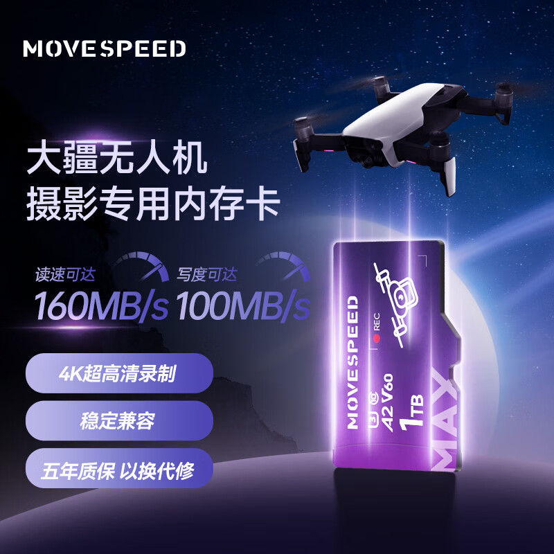 移速(MOVE SPEED)1TB TF(MicroSD)存储卡 无人机内存卡高速U3 V60 4K超清监控相机储存卡 读数160MB/s价格:799.00元!
