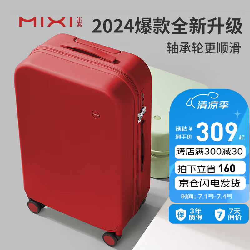 米熙红色拉杆箱子行李箱结婚登机箱男旅行箱包密码箱女20英寸高颜值36价格:449.00元!