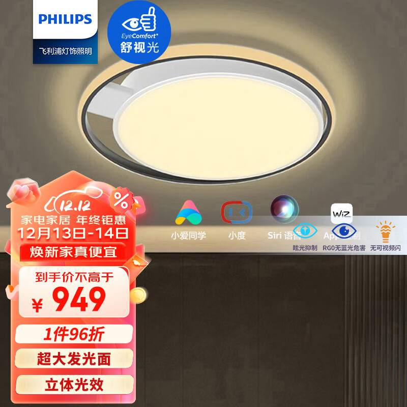 飞利浦(PHILIPS)led客厅灯卧室灯智能Wi-Fi 悦璃异型吸顶灯40W 9290032520价格:1149.00元!