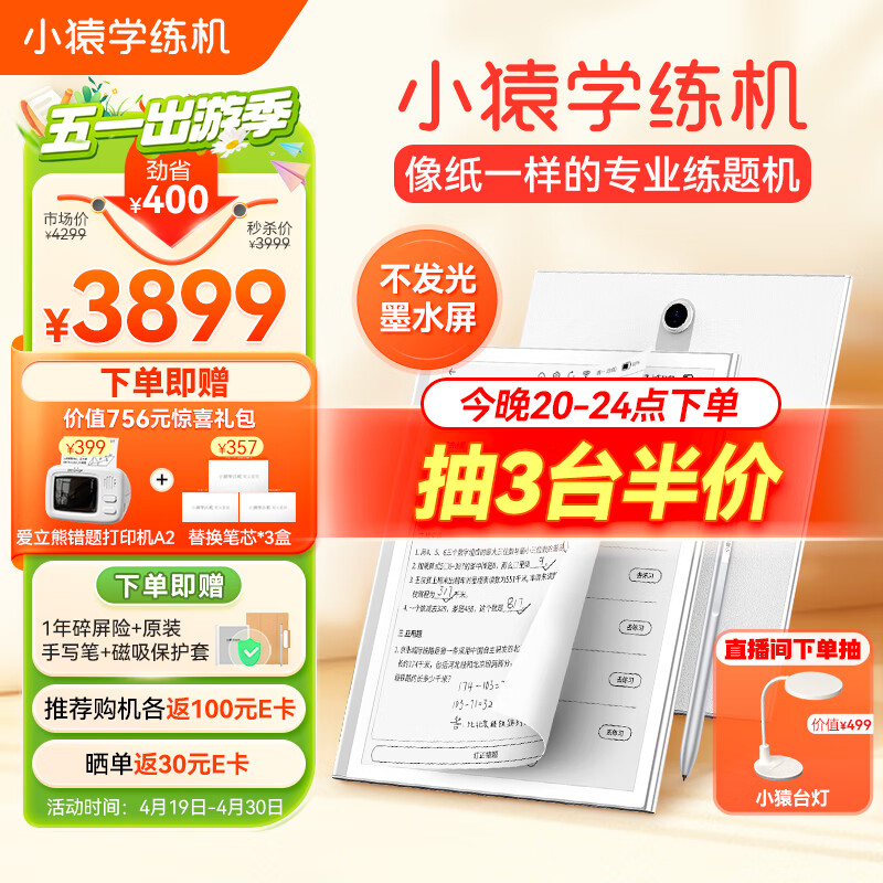 小猿学练机 旗舰款 10.3英寸墨水屏 教材同步 AI错题本 学生平板 学习机 小猿智能练习本S2 电纸书价格:4299.00元!
