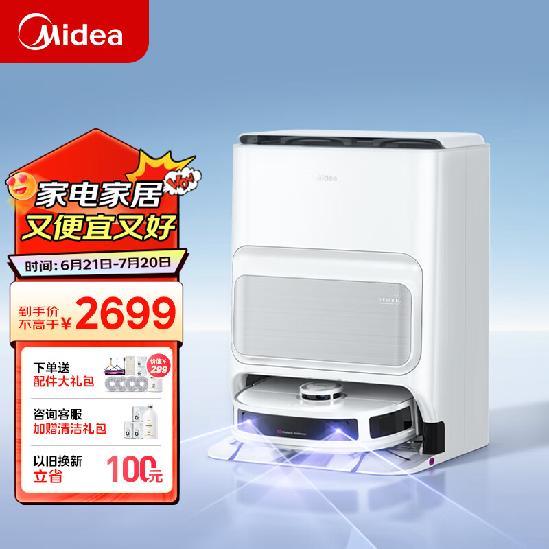 美的(Midea)扫地机器人扫拖一体 灵眸V12极地白 自动集尘扫拖洗烘一体机自动清洗拖布 猫狗宠物毛发克星洗地机价格:2699.00元!