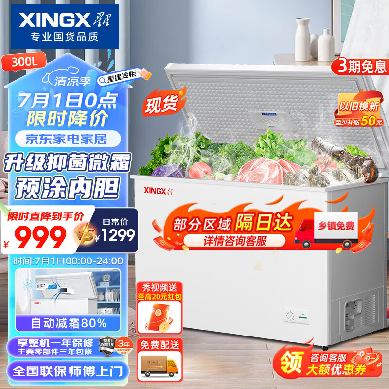 星星(XINGX)300升家用商用减霜净味冰柜 冷藏冷冻转换冷柜 节能顶开冰箱 BD/BC-300QJ价格:1039.00元!