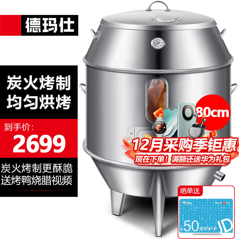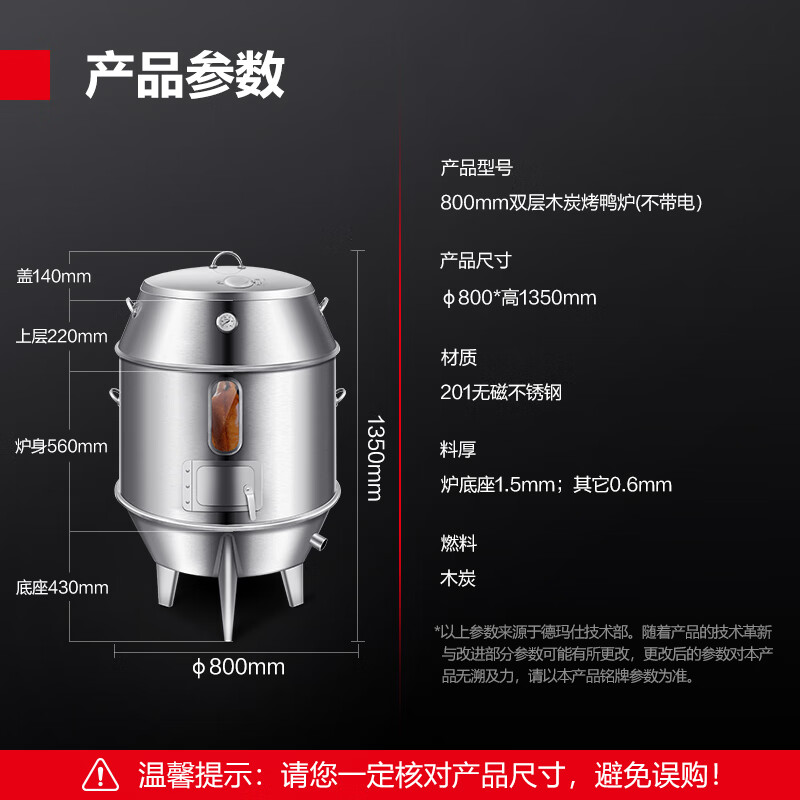 德玛仕(DEMASHI)商用双层木炭烤鸭炉不锈钢加厚保温烤鸡烧鹅烧鸭吊炉 GTL-TKL80(木炭款 80cm直径)价格:2699.00元!