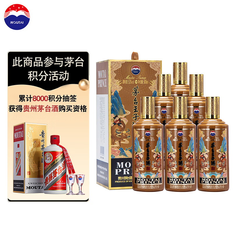 茅台(MOUTAI)茅台王子酒 辛丑牛年 酱香型白酒 53度 500ml*6瓶 箱装 生肖收藏价格:3234.00元!