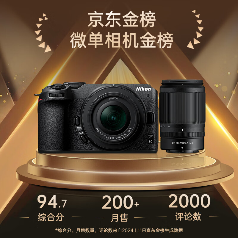 尼康(Nikon)Z30 微单相机 微单机身 无反相机 半画幅(Z DX 16-50mm+50-250mm 双镜头)4K超高清视频价格:8999.00元!