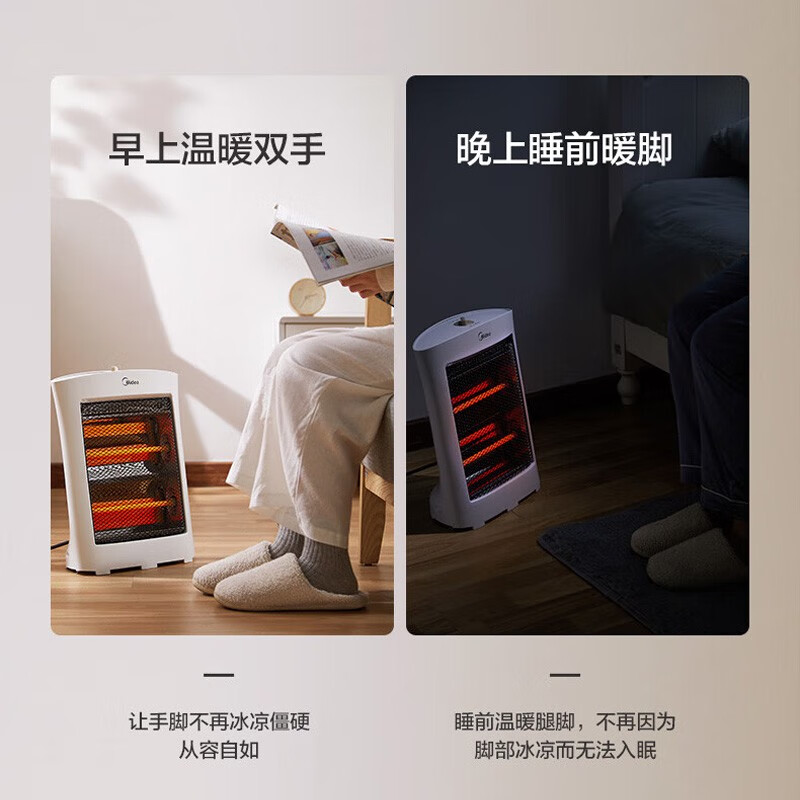 4、北方的天气早上实在太冷了,孩子每天坐在那里上个网课一直叫冷,看了几天,终于决定买美的这款小太阳,小小的,造型又好看,功率又不大,一小时不到一度电,热起来也很暖和,这下好了,以后再也不用担心受凉啥的。