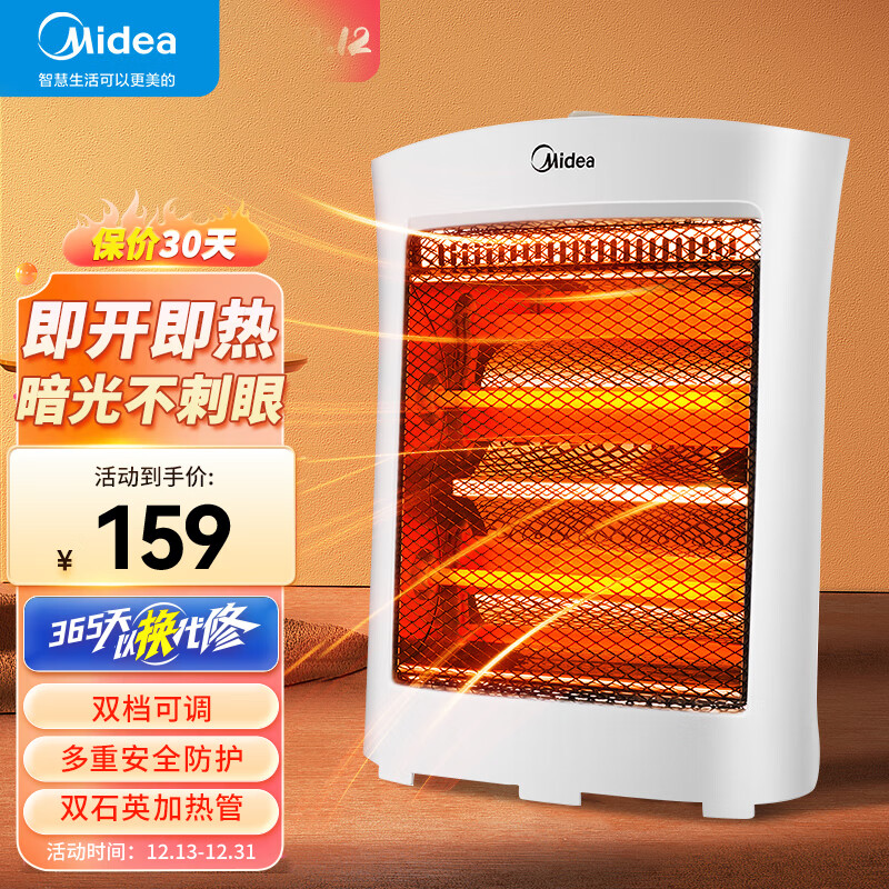 美的(Midea)小太阳取暖器家用节能电暖器台式电热器暖气机办公室烤火炉暖脚器暗光防烫远红外电暖气 NS8-15D【倾倒断掉 过热保护 白色】 台式价格:199.00元!