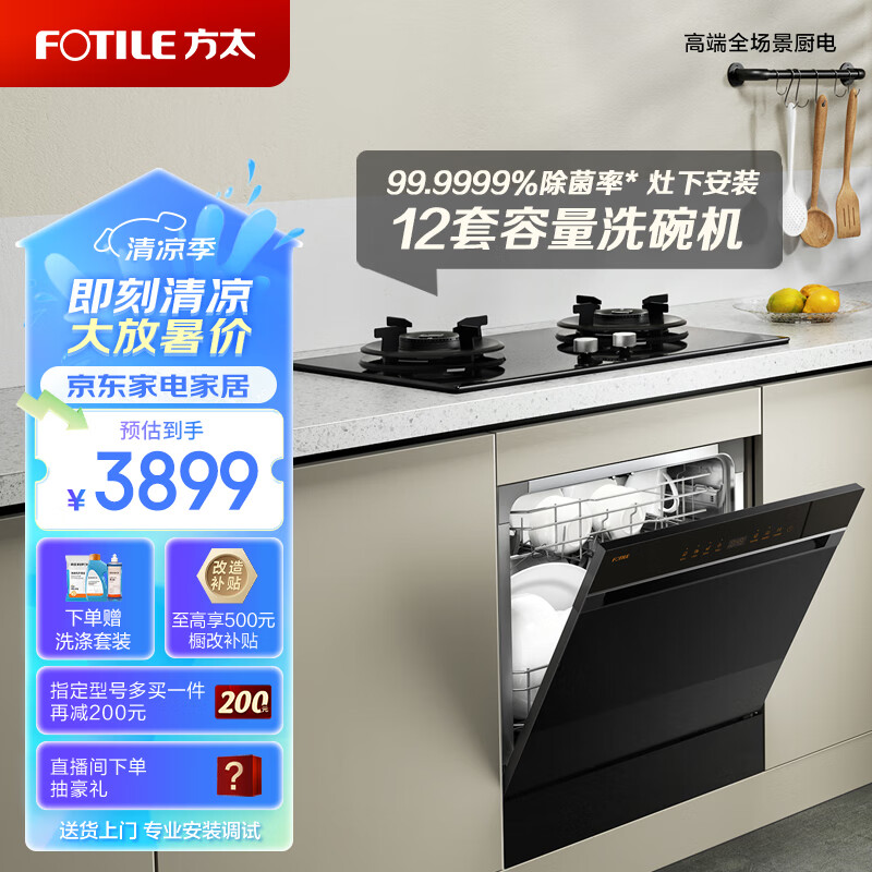 方太(FOTILE)洗碗机嵌入式家用 高能气泡洗 12套大容量 灶下洗碗机 一级水效 30min超快洗 NJ03S价格:3899.00元!