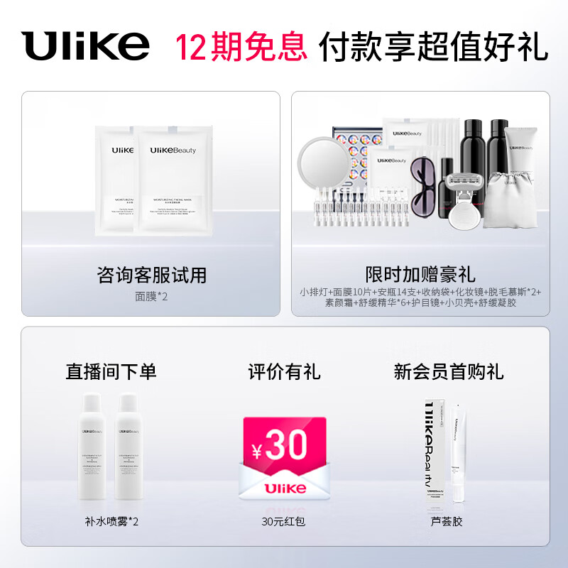 Ulike蓝宝石冰点脱毛仪剃毛器 白皇后大排灯美容仪 Air3水晶紫+白皇后面罩套装 送女友生日过节价格:5208.00元!