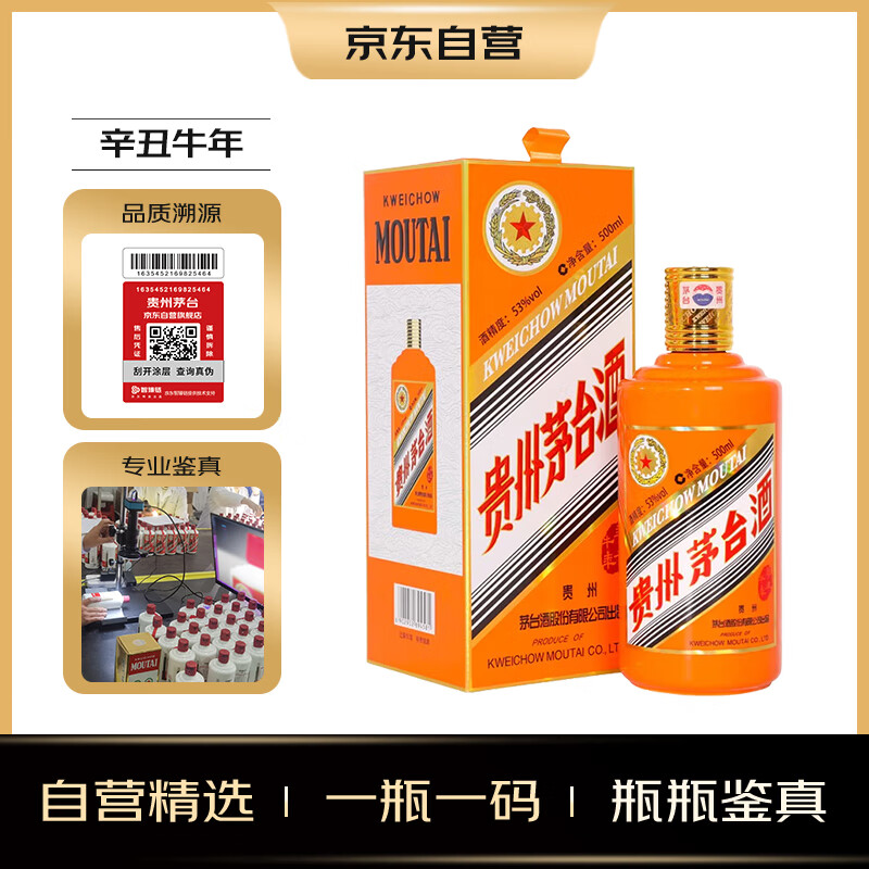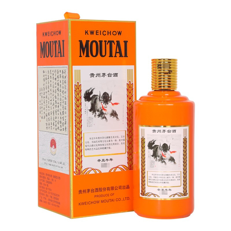 茅台(MOUTAI)生肖纪念 辛丑牛年 酱香型白酒 53度 500ml 单瓶装价格:3699.00元!