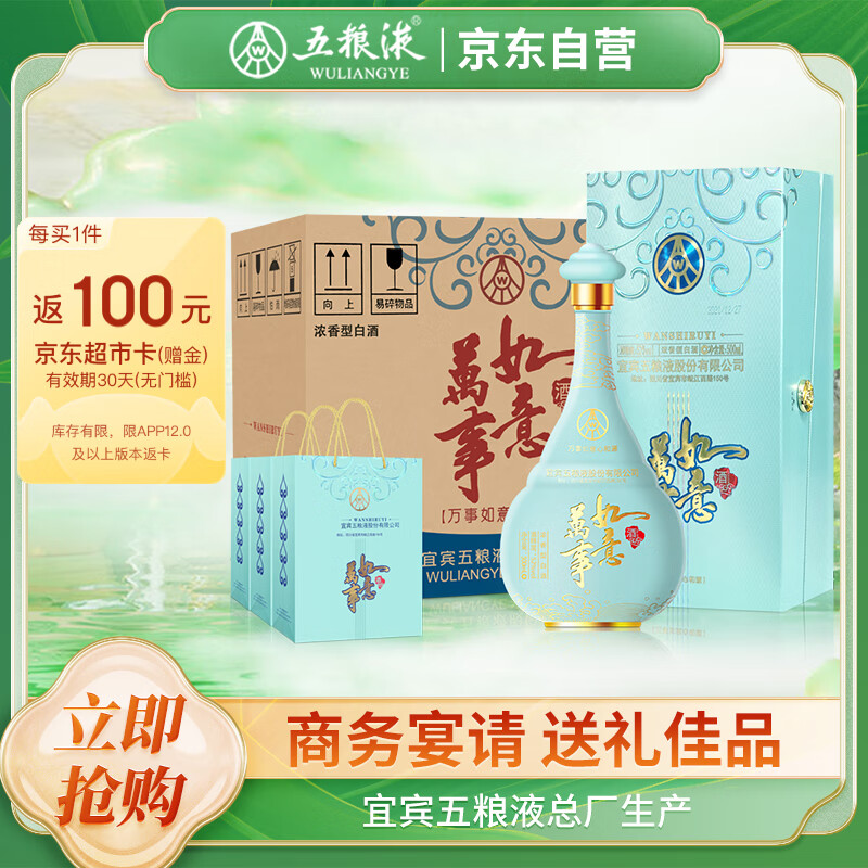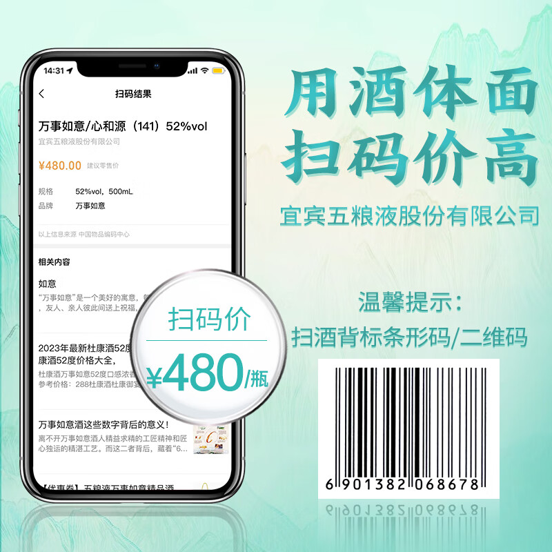 五粮液股份 中秋送礼 万事如意心和源52度500ml*6瓶 固态法浓香型白酒价格:2239.00元!