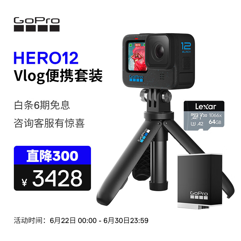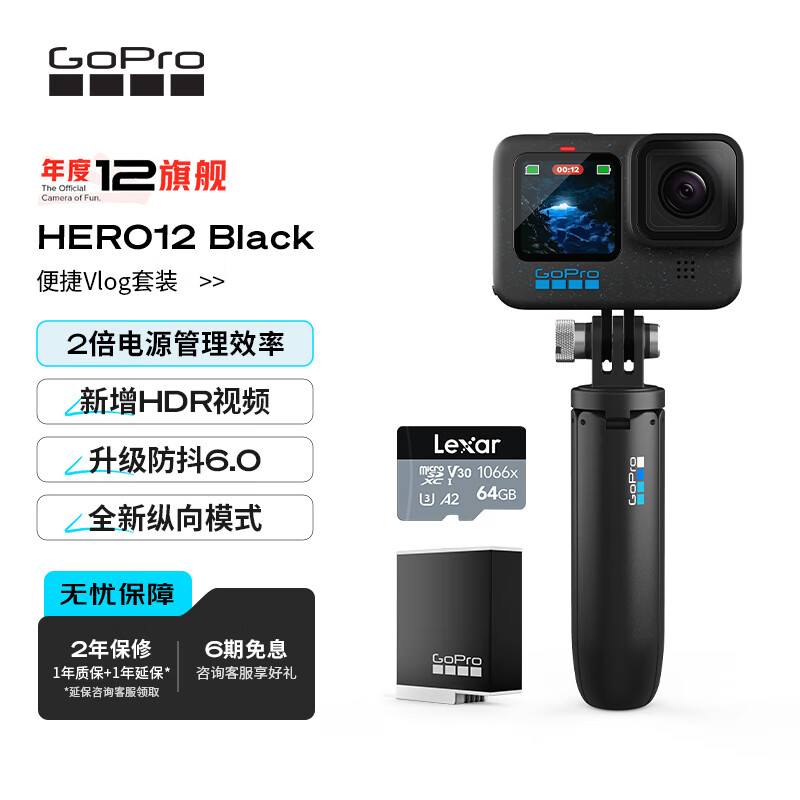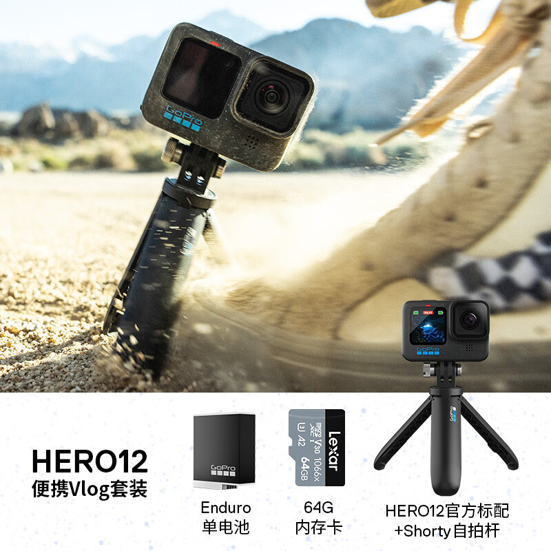 GoPro HERO12 Black防抖运动相机 户外出行潜水防水相机 vlog便携【shorty+Enduro单电+64G卡】价格:3428.00元!