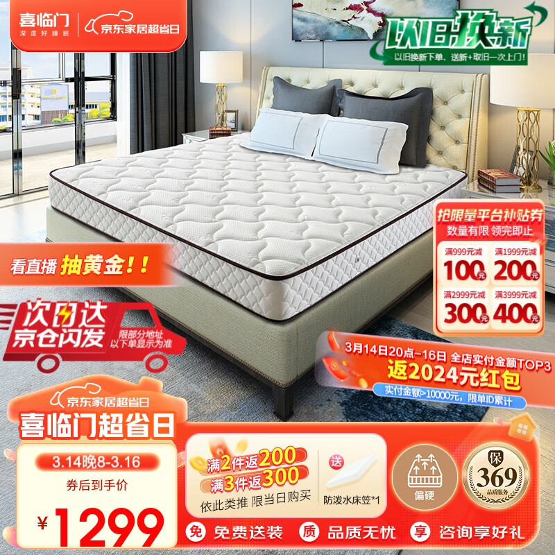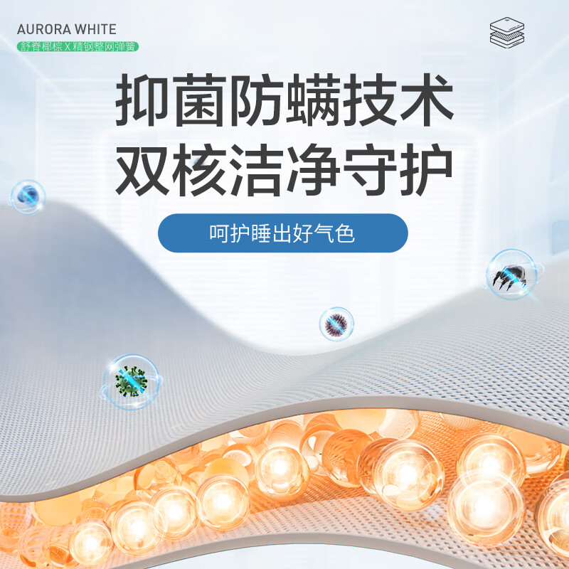 喜临门 3D椰棕床垫 邦尼尔弹簧床垫 抑菌防螨床垫 极光白2S 1.8x2米价格:1399.00元!