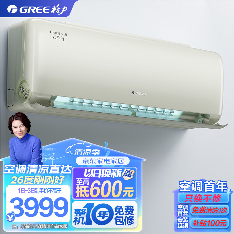 格力(GREE)新风空调 京东小家智能生态 大1匹 云舒氧 壁挂式卧室挂机KFR-26GW/NhHg1BAj(豆蔻绿)价格:3999.00元!