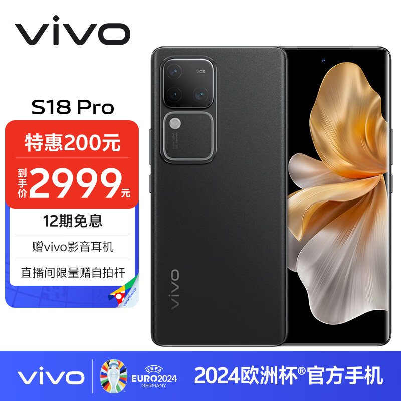 vivo S18 Pro 12GB+256GB 玄黑 天玑9200+旗舰芯片 后置影棚级柔光环 5000mAh超薄蓝海电池 拍照 手机价格:3199.00元!