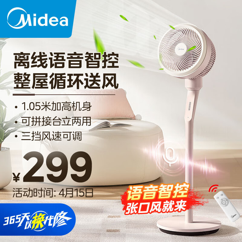 美的(Midea)电风扇 空气循环扇家用立式遥控落地扇涡轮换气扇循环对流3D摇头电扇轻音低噪大风力节能风扇 FGA24THR【离线语音控制】价格:499.00元!