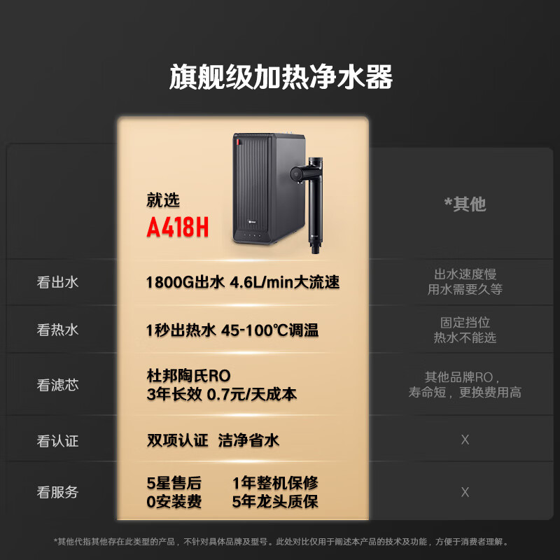 352加热净水器 1800G常温出水4.6L/min 陶氏ro反渗透家用直饮水 智能即热400G通量净热一体机A418H价格:4099.00元!