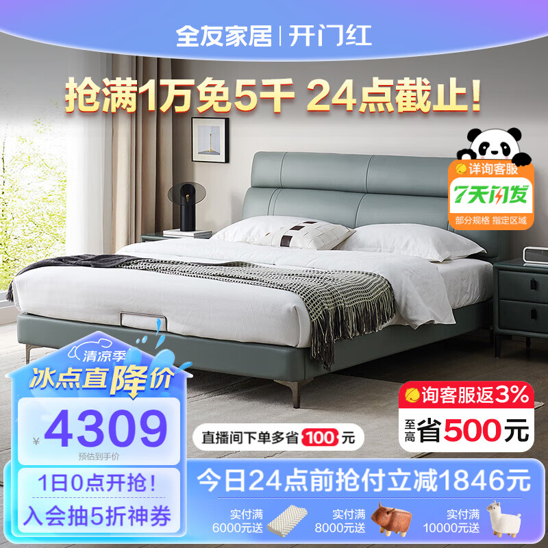 全友家居 真皮床 头层牛皮现代简约主卧室双人皮艺软包大床轻奢105251价格:6155.71元!