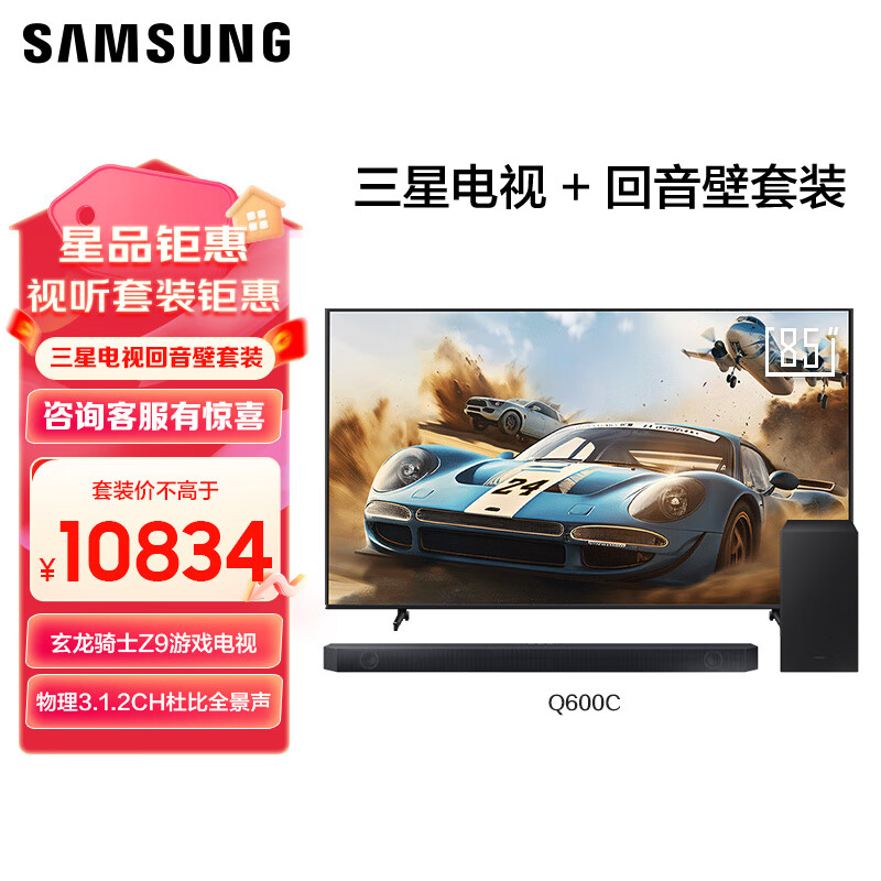 三星(SAMSUNG)玄龙骑士Z9 85英寸 3+64G 专业游戏电视 5.8ms 低延迟 UA85ZU9000JXXZ +HW-Q600C/XZ音箱套装价格:10834.00元!