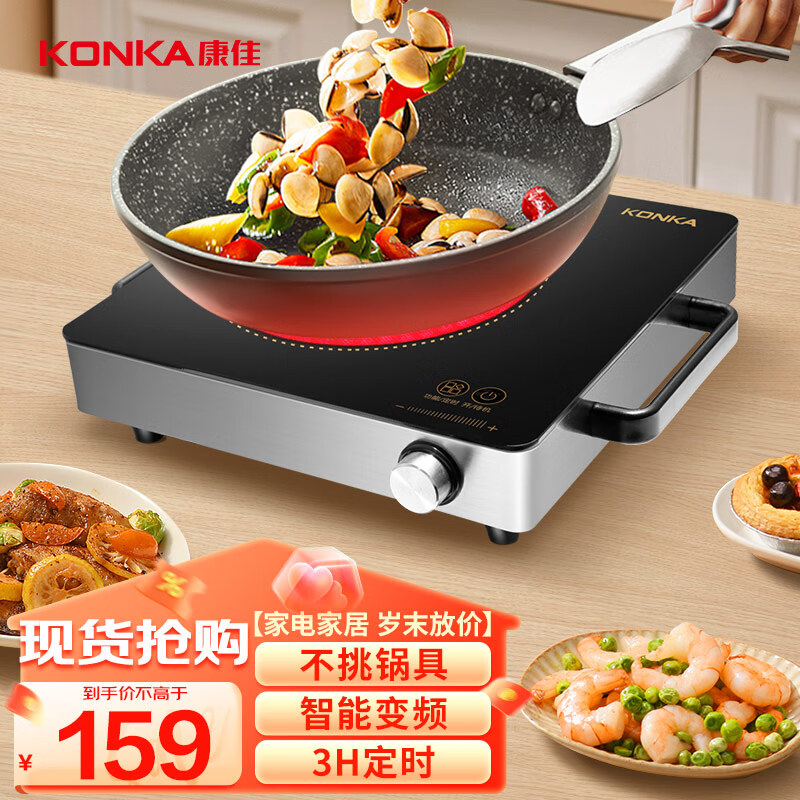 康佳(KONKA)电陶炉 家用电磁炉电茶炉光波炉红外炉大功率不挑锅 中号 KES-W21CS323价格:159.00元!