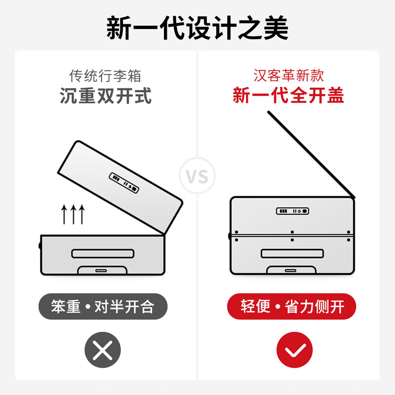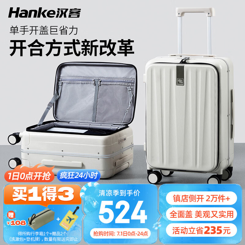 汉客行李箱男拉杆箱女旅行箱69升大容量24英寸象牙白镇店前侧开盖铝框价格:759.00元!