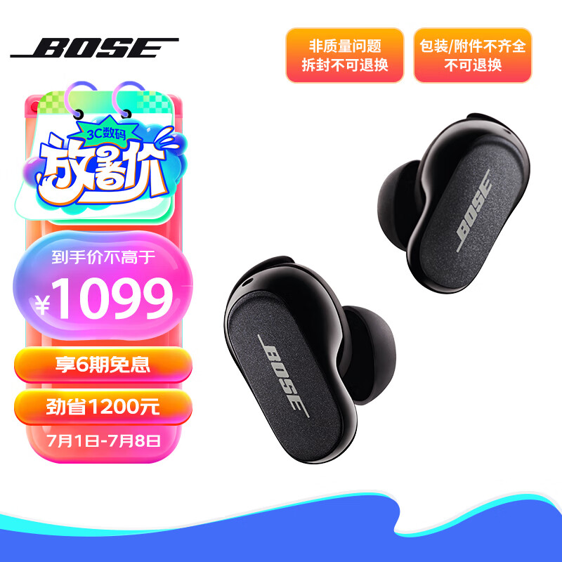 Bose QC消噪耳塞II-黑色 大鲨二代 真无线入耳式蓝牙主动降噪耳机耳麦 智能音场调校 毫秒级精准消噪价格:1199.00元!