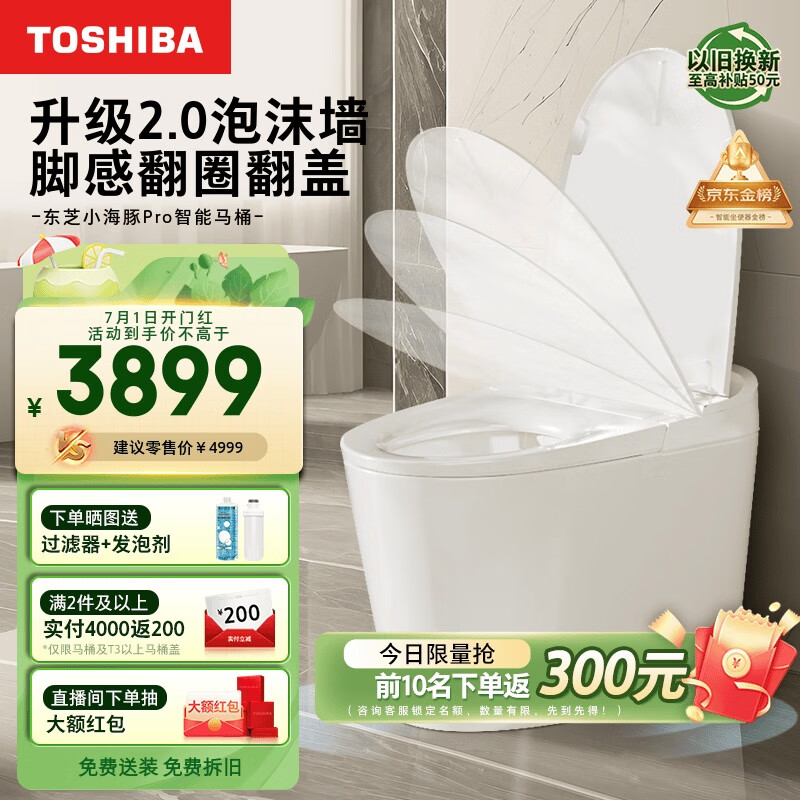 东芝(TOSHIBA)小海豚pro全智能马桶自动感应翻圈翻盖抑菌杀菌坐便器A405-400价格:4399.00元!