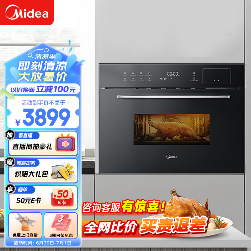美的(Midea)R3J嵌入式微蒸烤一体机 APP操控微波炉蒸箱烤箱34L 家用多功能烘焙多重自净 京东小家BG3405W价格:3899.00元!