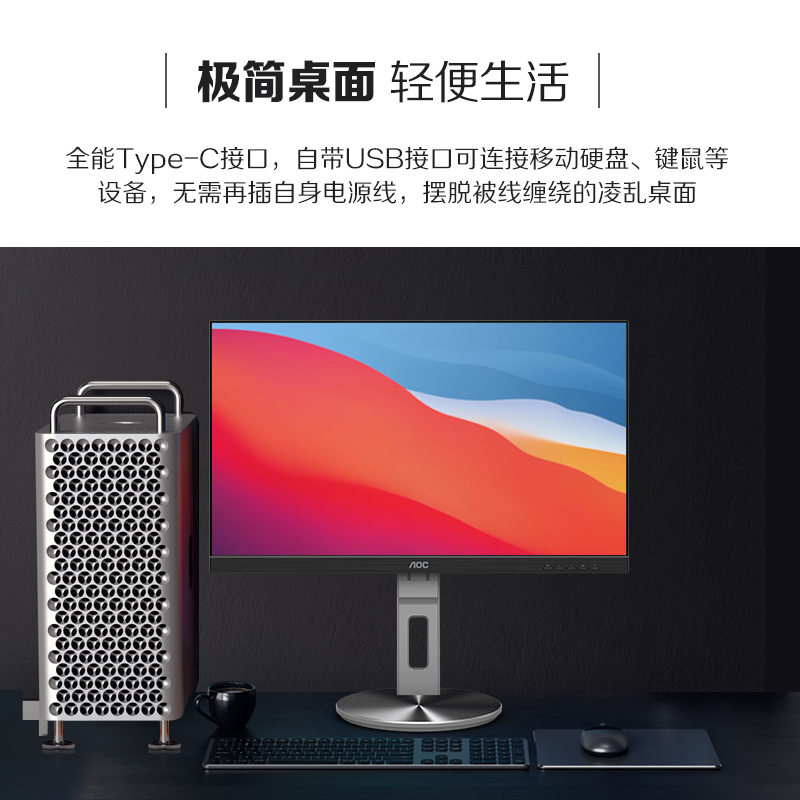 AOC 23.8英寸 2K 75Hz IPS HDR400 Type-C接口90W TUV爱眼认证 双向旋转升降 内置音箱 电脑显示器 Q24N3R价格:1599.00元!