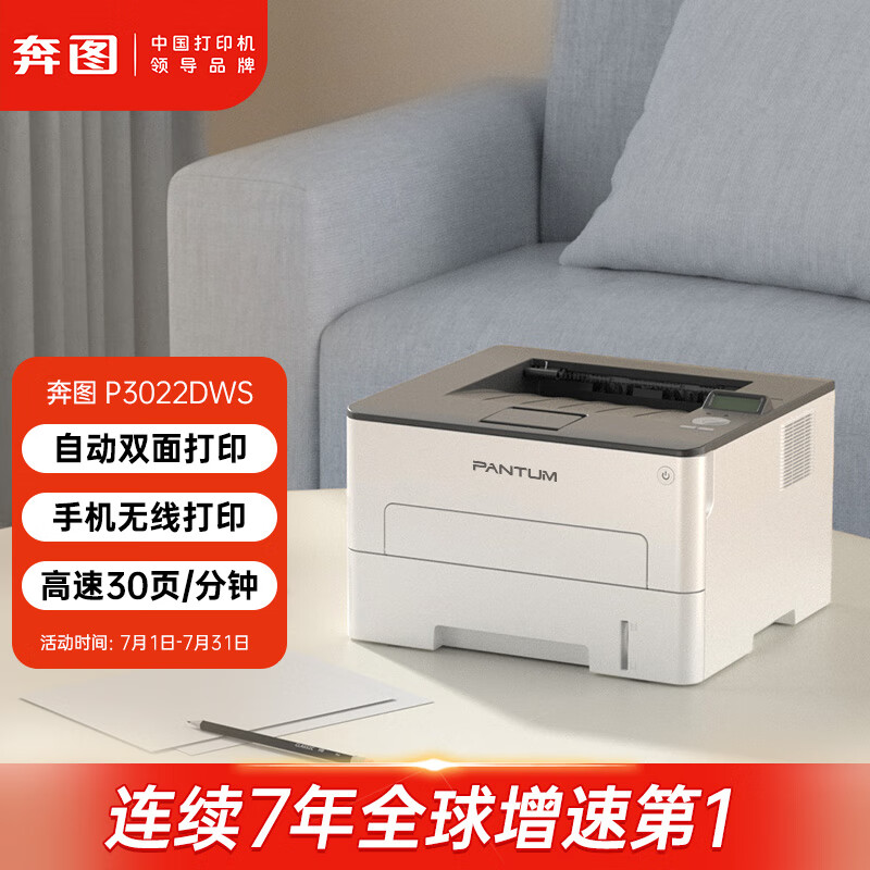 奔图(PANTUM)P3022DWS黑白激光打印机 商用无线办公 自动双面高速打印价格:869.00元!