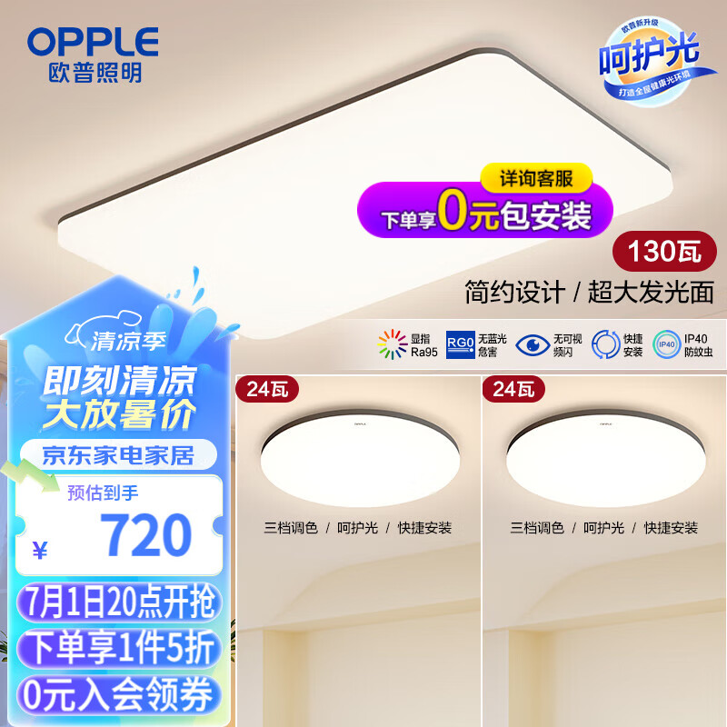 欧普照明(OPPLE) 吸顶灯客厅大灯可调光LED照明灯具灯饰套餐2呵护光价格:1440.00元!