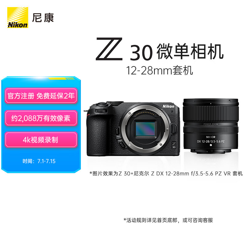 尼康(Nikon)Z 30 微单相机 微单机身 无反相机 半画幅(Z DX 12-28mm f/3.5-5.6 PZ VR)4K超高清视频价格:6599.00元!