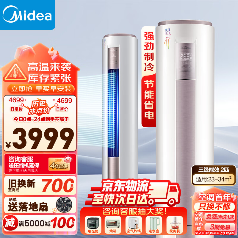 美的(Midea)智行三代自清洁三级能效2匹空调变频冷暖两用制冷制热柜机立式客厅大出风口空调家电以旧换新YA400价格:3999.00元!