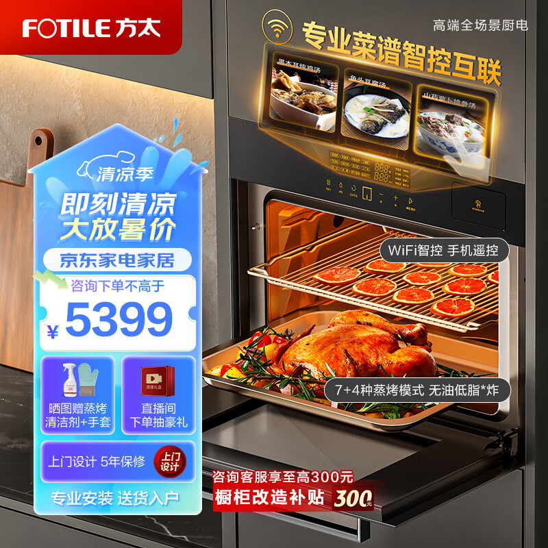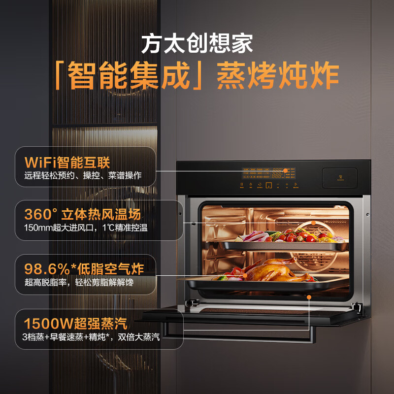 方太(FOTILE)蒸烤箱一体机 嵌入式家用智能蒸烤炖*炸四合一 55L大容量 脱脂炸超大蒸汽 蒸箱烤箱ES5.i价格:5399.00元!