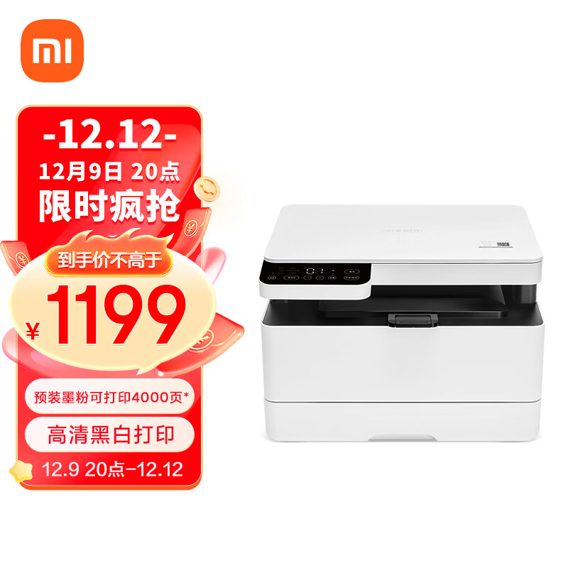 小米(MI)激光打印一体机K200 黑白激光 打印复印扫描三合一 办公/家用/学生打印 一碰打印/鼓粉分离价格:1299.00元!